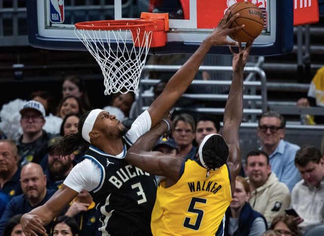 在过去2个赛季的季后赛,雄鹿全都是被步行者给淘汰出局,球队也就此经历了阵容大变化,甚至还在今夏直接签下了步行者内线核心特纳。这次上来他们打得十分专注,早早占据场上主动,不过步行者打得也很顽强,始终咬着比分,末节更是疯狂反扑,即便是落后两位数的不利局面,还是依靠着顽强的斗志将比分追至115平。