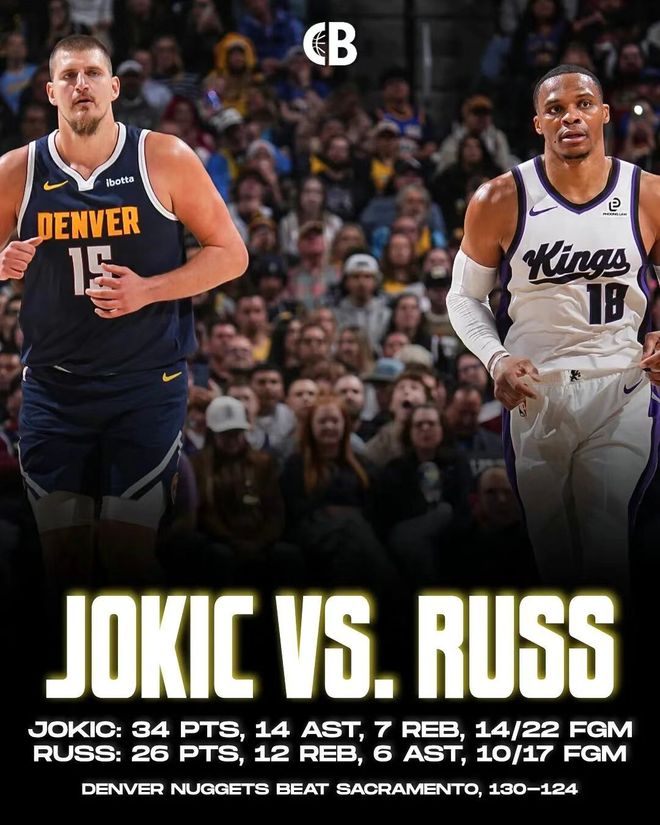 国王 124-130 不敌掘金的赛场,面对旧主,威少在 37 分钟里火力全开,17 投 10 中、三分 6 中 3、罚球 3 中 3,轰下 26 分 12 篮板 6 助攻 2 抢断的炸裂数据,不仅拿下全队最高分和第二高篮板,更用无保障老将底薪合同打出了千万级别的性价比。