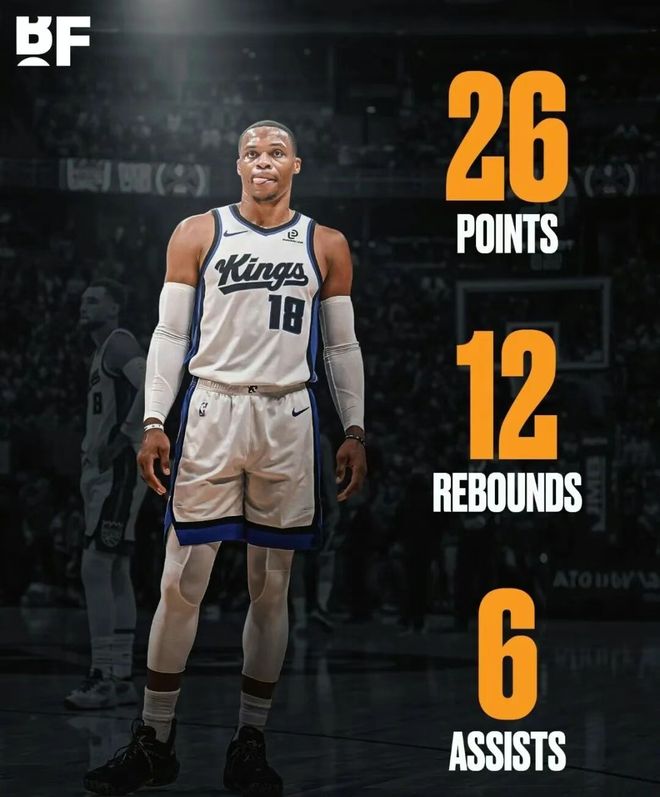 谁能想到,这位拒绝 347 万美元球员选项、甘愿拿底薪加盟国王的老将,还能在生涯第 16 个赛季上演 “逆生长”。本赛季至今,威少出战 6 场,其中 2 次首发,场均 27.6 分钟贡献 13.9 分 5.9 篮板 5 助攻 1.4 抢断,43.2% 的投篮命中率 + 39.4% 的三分命中率 + 70% 的罚球命中率,三项数据均保持在生涯中上游水准。