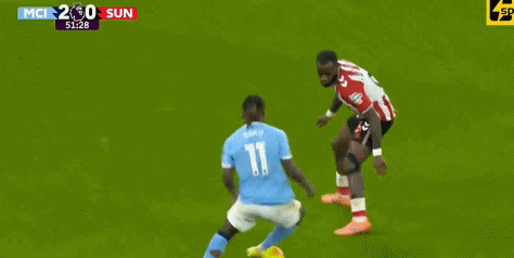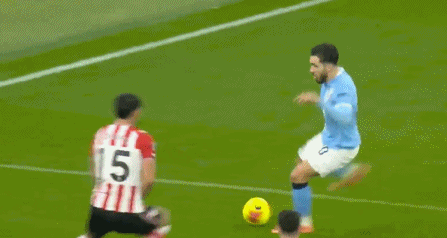 第22分钟,穆杰莱右路弧线球斜塞,传得恰到好处,伊西多尔禁区内单挑曼城后防线,小角度抽射被鲁本-迪亚斯封堵。